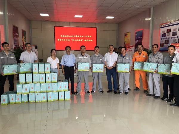 盛夏以来,连日高温,酷热难耐,时搏一站式服务官网安徽碳鑫焦炉煤气综合利用项目现场的工人们埋头苦干、挥汗如雨。为缓解现场工人夏日劳作的辛苦,8月12日,公司工会主席桂长田一行来到焦炉煤气综合利用项目部开展“夏日送清凉”慰问活动。