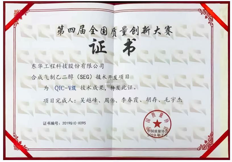 名称:第四届全国质量创新大赛QIC-V级技术成果奖