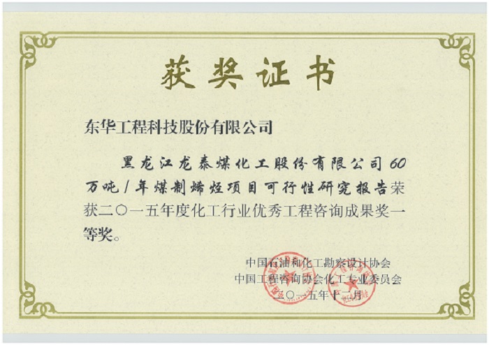 项目:黑龙江龙泰煤化工股份有限公司60万吨每年煤制烯烃项目可行性研究报告