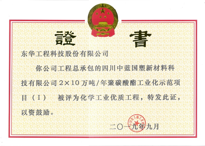 项目:四川中蓝国塑新材料科技有限公司2×10万吨年聚碳酸酯工业化示范项目(Ⅰ)