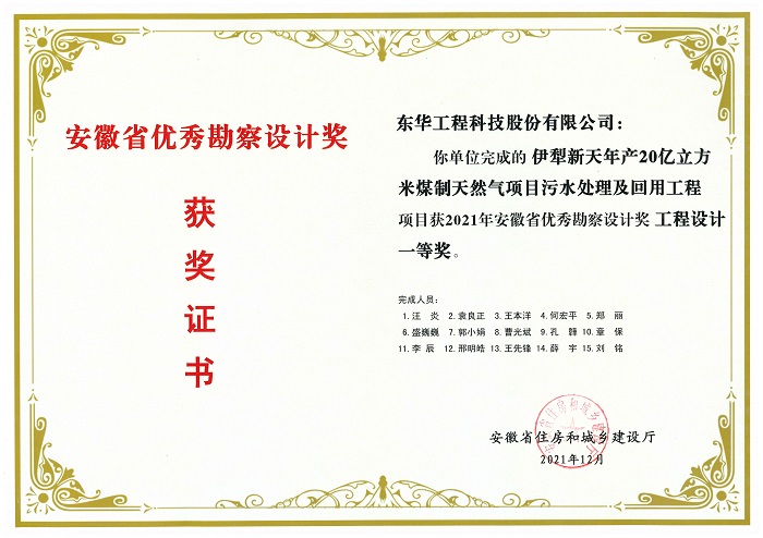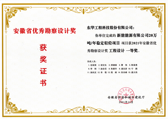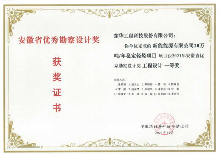 名称:安徽省优秀勘察设计奖工程设计一等奖