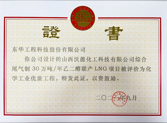 项目:山西沃能化工科技有限公司综合尾气制30万吨每年乙二醇联产LNG项目