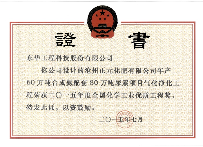 项目:沧州正元化肥有限公司年产60万吨合成氨配套80万吨尿素项目气化净化工程