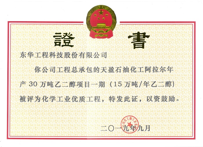 项目:天盈石油化工阿拉尔年产30万吨乙二醇项目一期(15万吨每年乙二醇)