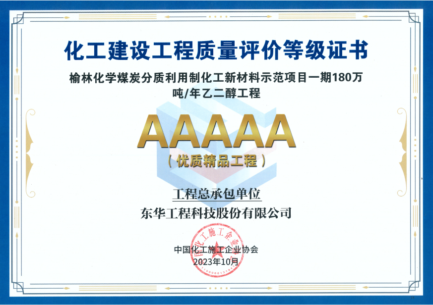 项目:榆林化学煤炭分质利用制化工新材料示范项目一期180万吨每年乙二醇工程