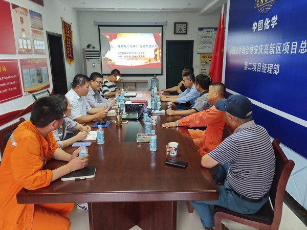为庆祝中国共产党成立99周年,进一步推进党建活动的深入开展,不断提高党员的理想信念、党建知识及施工管理水平。6月29日下午,时搏一站式服务官网安庆项目党支部联合中化三建项目党支部,组织开展“迎七一·建党九十九周年党建共建”主题党日活动。活动主要分为五部分:以“回忆入党初衷,坚定理想信念”为主题,讲述“我的入党故事”;坚持党建与生产管理融合,分享施工管理经验;开展党建知识竞赛;过政治生日;重温入党誓词。