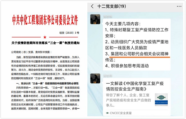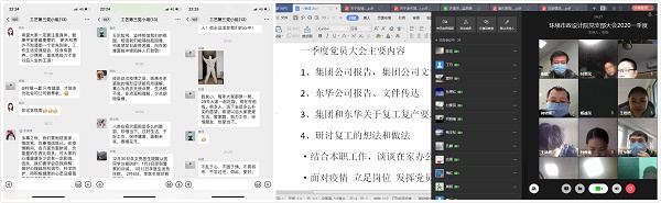 上有部署,下有行动,在全力做好疫情防控的同时,公司总部和项目现场各支部迅速上线活跃了起来,通过学习强国、企业微信等网络通讯平台,组织党员第一时间集中学习总书记有关加强疫情防控的重要讲话精神,传达落实集团党委和公司党委关于疫情防控与复工复产的最新工作安排,并结合集团和公司两级职代会精神,充分研讨当前部门重难点任务,共同谋划年度工作思路。为切实保障线上会议开出质量、开出成效,公司党委坚持三管齐下,以落实点名报到程序,严格线上会议纪律。建立工作反馈机制,引导党员交流互动。同时加强线上工作督查,及时评估党员整体表现,真正做到了会议质量不降低,党员状态不掉线。