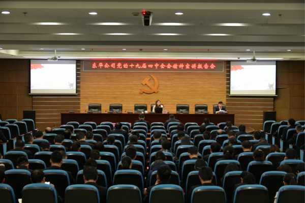 为深入学习宣传贯彻党的十九届四中全会精神,12月18日下午,东华公司党委在报告厅举办了学习贯彻党的十九届四中全会精神宣讲报告会。会议邀请了安徽省委讲师团成员、省直讲师团成员、省直工委党校马克思主义基本理论教研室副教授魏群,为公司全体党员作了题为《“中国之治”新境界——学习贯彻党的十九届四中全会精神》专题报告。会议由公司党委书记、董事长吴光美主持,公司党政班子成员、基层党员干部、部分职工共同聆听了宣讲。