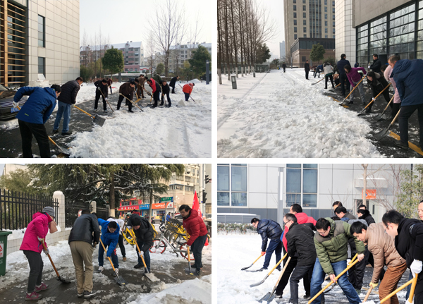 近日,合肥市开始迎来新一轮大规模降雪,为保障公司内外道路畅通,方便大家出行。土建室、电控室、设备室、PMC管理中心和综合管理部等党支部先后组织党员和志愿者150多人参加义务扫雪除冰活动。