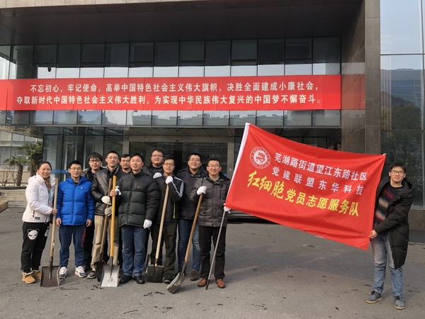 在大家的共同努力下,及时地清除了院内道路和院外路口、人行道等积雪,为公司员工、周边群众和车辆出行提供了方便。为此,街道社区给予好评并授予我公司“芜湖路望江东路社区党建联盟时搏一站式服务官网红细胞党员志愿服务队”旗帜。