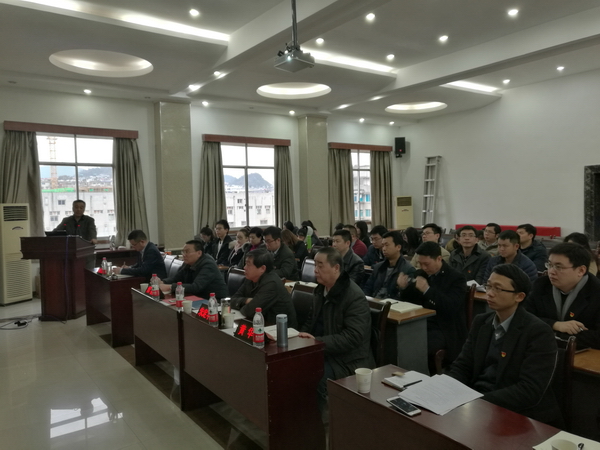2018年1月13日上午,贵州东华在六楼会议室召开党员大会,贵州东华党委书记余伟胜同志首先介绍了分公司的基本概况、党建活动的开展、2017年生产经营完成情况以及未来三年发展规划等,随后,赵光明同志结合自己的学习心得,宣讲《习近平新时代中国特色社会主义思想与十九大精神学习几点体会》,为全体党员上了一堂着眼高远、内容深邃的党课。