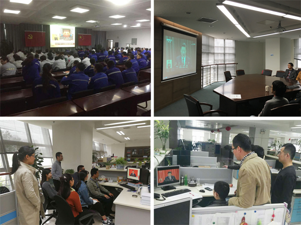 与此同时,报告厅外工艺室、设备室、技术经济室等部门的职工也通过网络直播等多种方式收看了开幕会盛况,远在千里以外的新疆天盈项目部组织了近40名驻地人员进行了集中收看,公司上下都沉浸在党的十九大胜利召开的热烈浓厚氛围中。