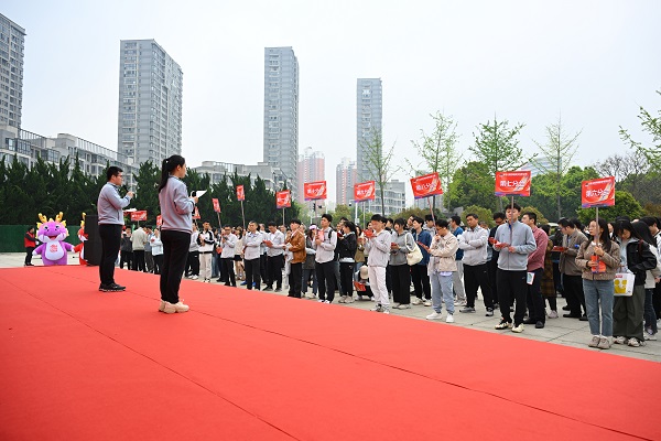 活动现场热闹非凡,志愿者和工作人员井然有序地穿梭在竞技区和环湖赛道区,为选手提供讲解、指引和帮助。竞技区选手摩拳擦掌,期望在为团队赢得积分的同时提高个人比赛名次;环湖赛道的选手三两成行,在观赏春景的同时谈笑风生,不时与赛道附近出现的龙形玩偶合影留念,展现出积极向上的精神风貌。
