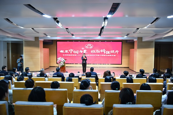 飒飒东风唱祝歌,春光潋滟赞巾帼。在播放了先进集体和先进个人自创的短视频后,获奖代表们依次登台接受表彰。“巾帼建功大讲堂”环节,4名“巾帼建功标兵”代表,同在场人员分享了她们的先进事迹。这几位优秀女性代表的故事,激励着每一位女性同胞,展示了勇于担当、昂扬向上的巾帼力量。此外,东华职工精心编排的歌舞曲艺等节目盛妆上演,共同庆祝节日,为大会增添了一抹靓丽的色彩。