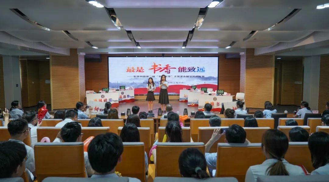 “风华正茂”——风采展示环节,各支队伍依次介绍了自己的队名、口号,并进行了包括歌舞、朗诵、舞台剧在内的主题展示,展现出了东华女工的自信风采;“有问必答”——必答题环节,选手们沉着冷静,对答如流,显示出过硬的理论知识水平;“争分夺秒”——抢答题环节,紧张刺激,拼知识面、更拼手速,每支队伍铆足干劲,你追我赶,毫不示弱,赢得在场观众阵阵掌声;“奋勇争先”——风险题环节,是智慧与实力的大比拼,也是后来居上,弯道超车、逆风翻盘的良好时机。