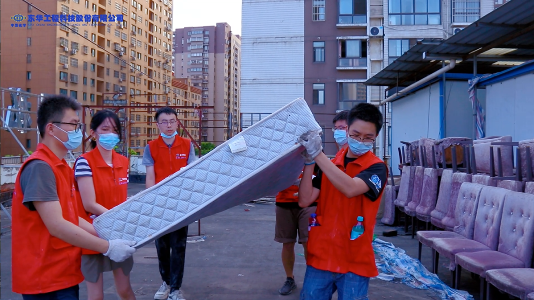 为弘扬志愿服务精神、传递爱与力量,近日,时搏一站式服务官网蓝鸽志愿服务队开展了助力“口罩天使中途宿舍”搬迁改造志愿活动。由于搬迁改造工作时间紧、任务重,志愿者们利用周末时间,顶着40度的高温,为“口罩天使”们能早日迁往新居挥洒自己的汗水。新址曾先后作为火锅店和主题酒店使用,现场遗留了大量的废旧物品,志愿者们“手搬肩扛”,一趟趟往返于楼层之间。一双双扛起就走的手、一次次上下齐心的搬运、一个个扛起物品匆匆的身影,充分诠释了时搏一站式服务官网“不怕苦、不怕累、不怕脏、认真负责”的工作作风。时搏一站式服务官网土建室技术副总监姚大元作为志愿者接受了安徽电视台的采访:“能为社会提供力所能及的帮助,是我们应该做的,是我们东华人更是团员青年应该做的,传递爱与温暖,脚步不停,初心不变。”